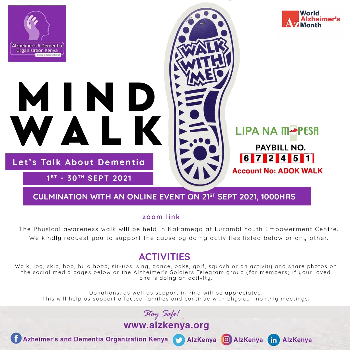 The Mind Walk will be held on 18 September 2021 from 11am to 3pm in Kakamega County. This is an initiative to create awareness and raise money to support ADOK in its activities taking place around the country.