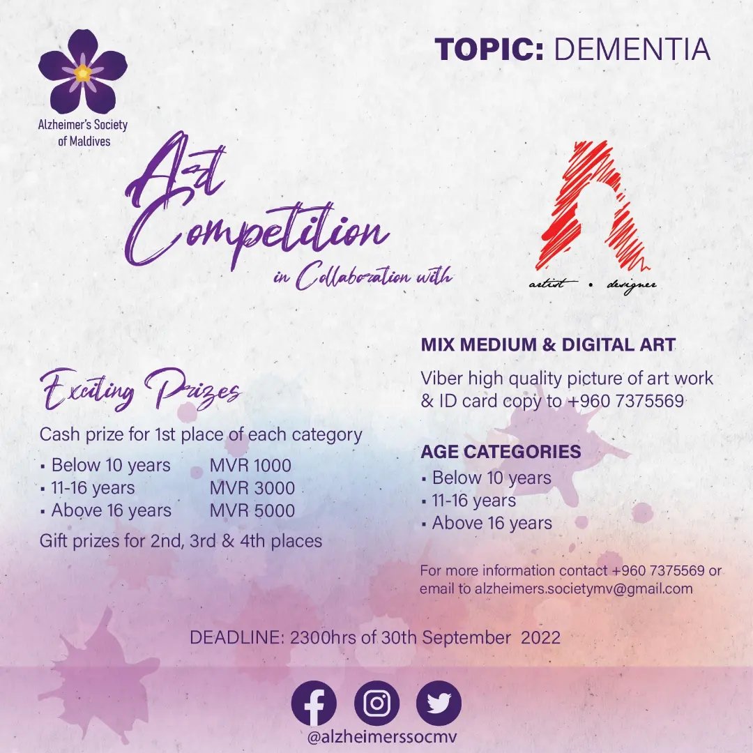 Alzheimer’s Society of Maldives is organising an Art Competition on the theme of dementia in collaboration with Artist & Designer Maldives.