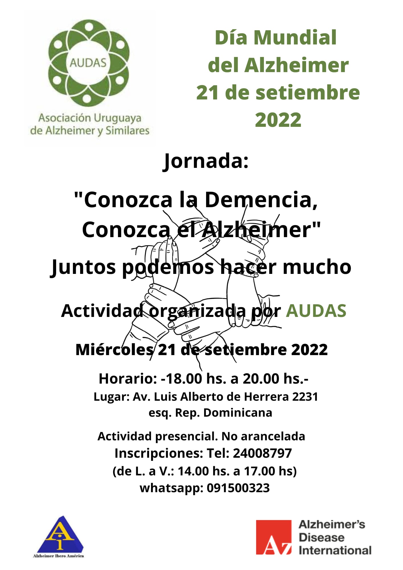 Asociación Uruguaya de Alzheimer y Similares (AUDAS) is organising an event for World Alzheimer’s Day around the theme ‘Know Dementia, Know Alzheimer’s’ on Wednesday 21 September 2022 from 6 to 9pm.